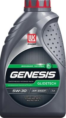 Лукойл GENESIS GLIDETECH 5W-30 - всесезонное синтетическое моторное масло последнего поколения, разработано с учетом последних требований стандартов по экономии топлива. Масло предназначено для всесезонного применения в современных высокофорсированных двигателях легковых и легких грузовых автомобилей, требующих использования масел категории FE (Fuel Economy), в том числе оборудованных турбонаддувом. Лукойл GENESIS GLIDETECH 5W-30 рекомендовано к применению в бензиновых двигателях автомобилей японского, американского и корейского производства, в которых требуются масла с уровнем свойств API SN и/или ILSAC GF-5 и классом вязкости SAE 5W-30 Масло способствует увеличению срока службы двигателя, значительному снижению расхода топлива и уменьшению вредных выбросов. Допуски: GM Dexos1, Ford WSS-M2C-929-A, WSS-M2C-946-A, ILSAC GF-5.