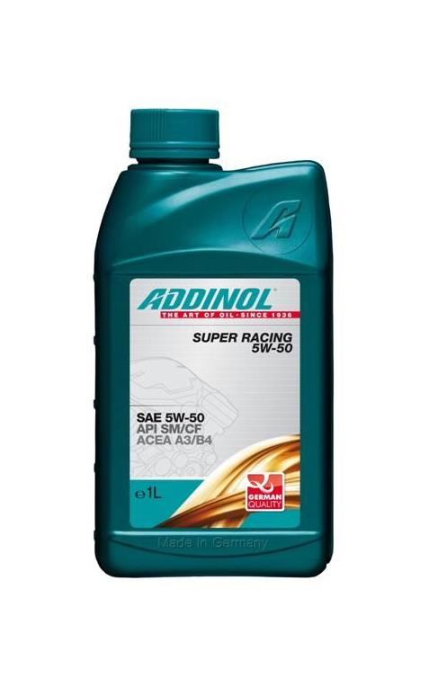 ADDINOL Super Racing SAE 5W-50 - всесезонное синтетическое моторное масло легкого хода для современных легковых автомобилей. Особо рекомендуется для двигателей с непосредственным впрыском и для турбодвигателей. Допуски: SAE 5W-50, ACEA A3/B3/B4; API SM/CF; выполняет требования: BMW Longlife-98; MB 229.3; VW 502 00/505 00; GM-LL-B-025