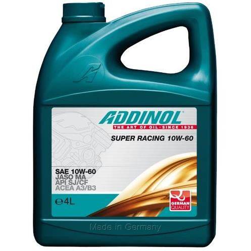ADDINOL Super Racing SAE 10W-60 - синтетическое моторное масло легкого хода для спортивных высокофорсированных двигателей. Идеальное решение для турбодвигателей и двигателей с непосредственным впрыском топлива. Допуски: SAE 10W-60, ACEA A3/B3; API SJ/CF; JASO MA