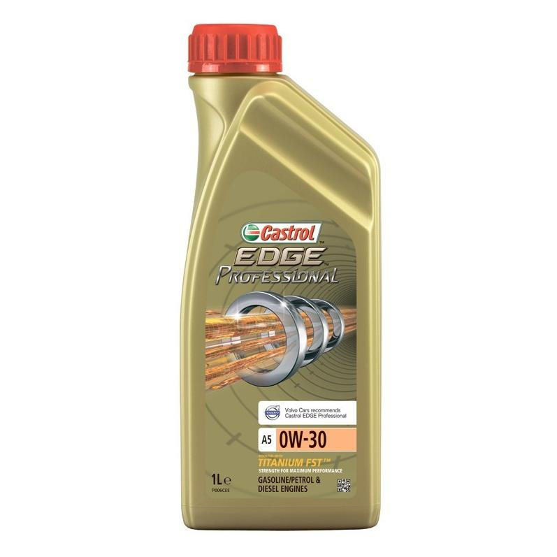 Castrol EDGE Professional A5 Volvo Titanium FST 0W-30 - полностью синтетическое моторное масло Castrol EDGE Professional произведено с использованием новейшей технологии TITANIUM FST™, придающей масляной пленке дополнительную силу и прочность благодаря соединениям титана. EDGE Professional A5 0W-30 предназначено для бензиновых и дизельных двигателей автомобилей, где производитель рекомендует моторные масла класса вязкости SAE 0W-30 спецификаций ACEA A1/B1, A5/B5, API SL, ILSAC GF-2 или более ранних. Volvo cars рекомендует Castrol EDGE Professional. Допуски: API SL; ACEA A1/B1/A5/B5; ILSAC GF-2; Volvo PKW