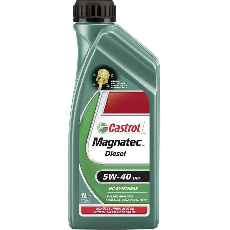 Castrol Magnatec 5W-40 Diesel DPF - предназначено для использования в дизельных двигателях автомобилей, включая с турбонаддувом, интеркулером, непосредственным впрыском в цилиндр, топливными рампами “cоmmon rail” и каталитическими дожигателями отработавших газов, а также с сажевыми фильтрами (DPF), где автопроизводитель рекомендует масла классификаций ACEA A3/B3/B4, C3 или API CF класса вязкости по SAE 5W-40. Спецификации: ACEA C3, API SM/CF, BMW Longlife-04, Meets Fiat 9.55535-S2, Meets Ford WSS-M2C-917A, MB-Approval 229.31, VW 502 00/505 00/505 01