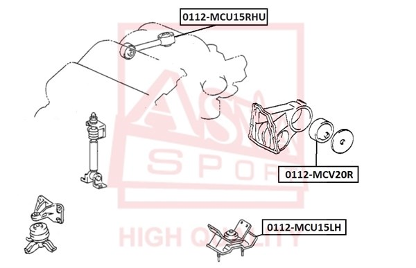 Описание: Автозапчасть фирмы ASVA с кодом 0112mcv20r Подушка двигателя задняя TOYOTA TOYOTA CAMRY SXV2#/MCV2# 1996-2001