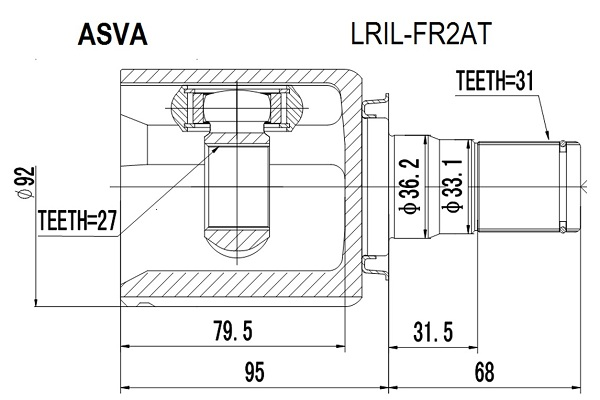 Описание: Автозапчасть фирмы ASVA с кодом HYSHIX35AT4WD ПОЛУОСЬ ПРАВАЯ 27X422X26