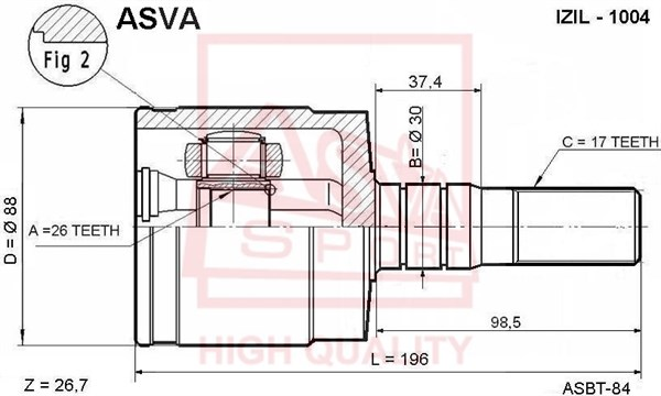 Описание: Автозапчасть фирмы ASVA с кодом ISIL1004 ШРУС внутренний левый 26х30x17