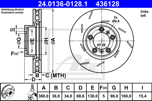Описание: Автозапчасть фирмы ATE с кодом 24013601281 Тормозной диск