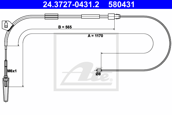 Описание: Автозапчасть фирмы ATE с кодом 24372704312 Трос ручного тормоза