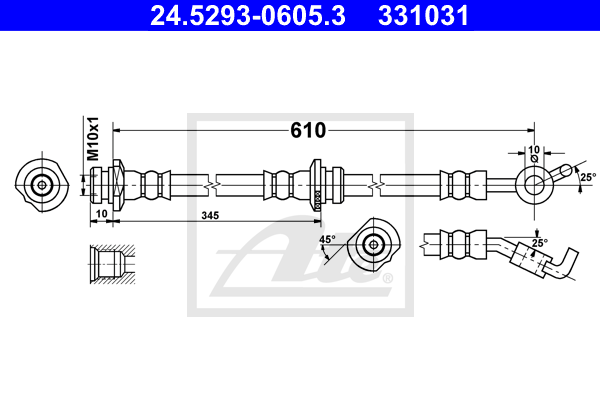 Описание: Автозапчасть фирмы ATE с кодом 24529306053 Шланг тормозной_NIS MICRA/C+C/NOTE 1.0-1.6/1.5DCI 03- ПЕР R L 605mm