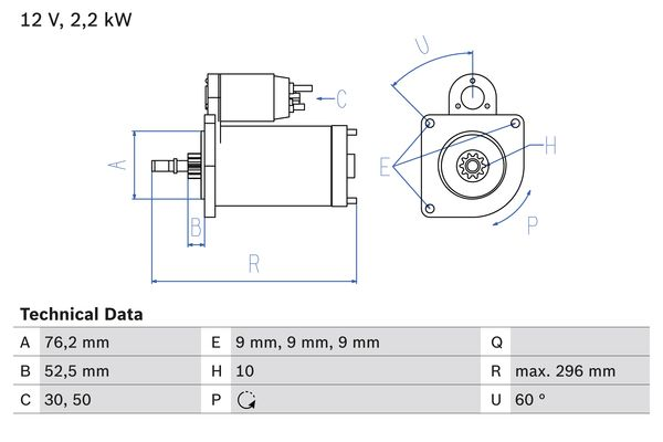 Описание: Автозапчасть фирмы BOSCH с кодом 0986016340 Стартер 12v 2.2kw