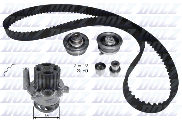 Описание: Автозапчасть фирмы DOLZ с кодом KD104 Комплект водяного насоса / зубчатого ремня