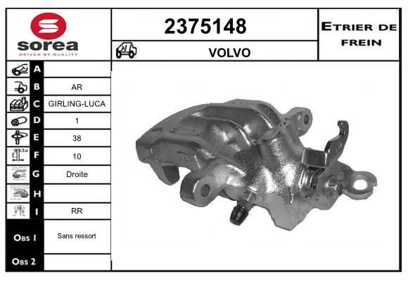 Описание: Автозапчасть фирмы EAI с кодом 2375148 2375148_суппорт тормозной задн. прав.!\ Mitsubishi Carisma, Volvo S40/V40 95>