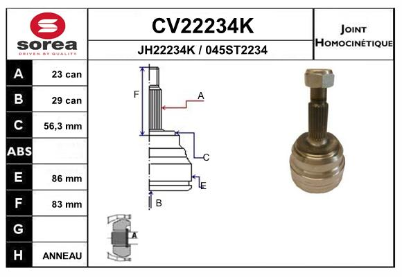 Описание: Автозапчасть фирмы EAI с кодом CV22234K Cv22234k_шрус наружный! 23x29 renault laguna 1.8-