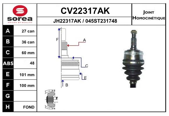 Описание: Автозапчасть фирмы EAI с кодом CV22317AK Cv22317ak_шрус наружный! 27x36 abs 48 mb vito 638