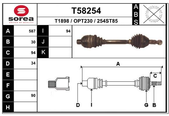 Описание: Автозапчасть фирмы EAI с кодом T58254 T58254 привод правый! 587mm opel vectra 2.2/2.0d 02>
