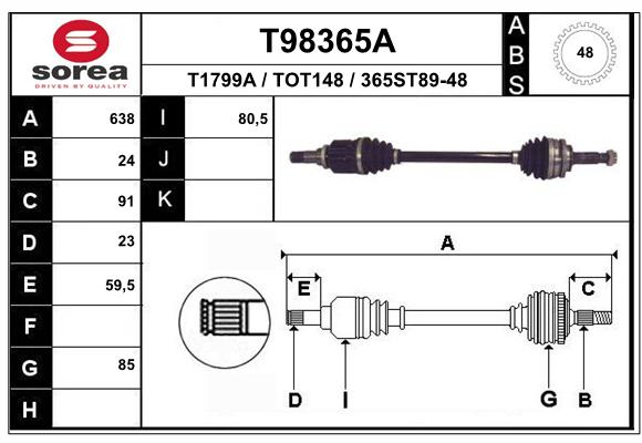 Описание: Автозапчасть фирмы EAI с кодом T98365A Вал приводной EAI T98365A