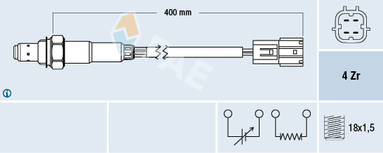 Описание: Автозапчасть фирмы FAE с кодом 77346 77346FAE_лямбда-зонд! L=400mm Nissan Almera/Teana/Murano Renault Espace/Vel Sa