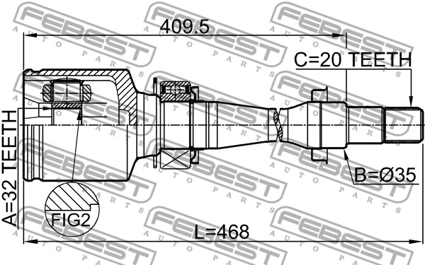 Описание: Автозапчасть фирмы FEBEST с кодом 0111CT220RH Шрус внутренний правый 32x35x20