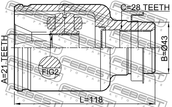 Описание: Автозапчасть фирмы FEBEST с кодом 0511DY5WATRH ШРУС ВНУТРЕННИЙ ПРАВЫЙ 21X43X28