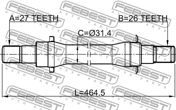 Описание: Автозапчасть фирмы FEBEST с кодом 2212sp4wdmt Полуось правая 27x464x26