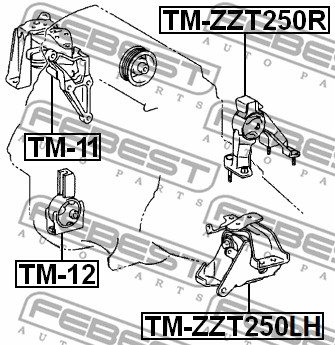Описание: Автозапчасть фирмы FEBEST с кодом TMZZT250R Опора двигателя TOYOTA AVENSIS 03-08 зад.