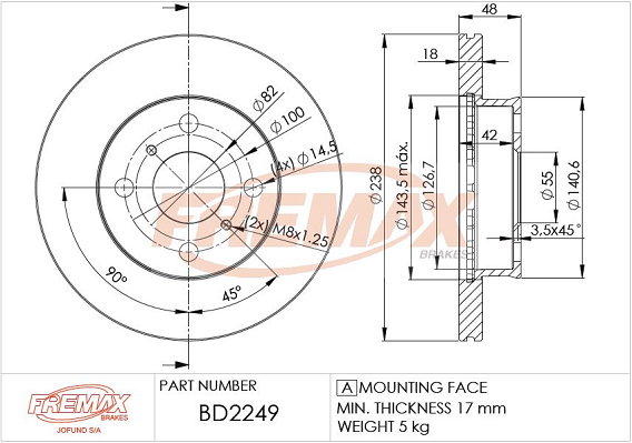 Описание: Автозапчасть фирмы FREMAX с кодом BD2249 Tarcza hamulcowa