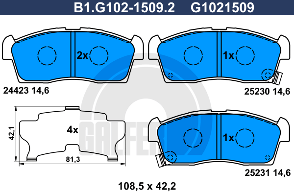 Описание: Автозапчасть фирмы Galfer с кодом B1G10215092 Колодки тормозные дисковые /комплект 4 шт/