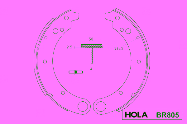 Описание: Автозапчасть фирмы HOLA с кодом br805 Колодки барабанные задние gaz volga 3102-3110 (к-т 4 шт.)