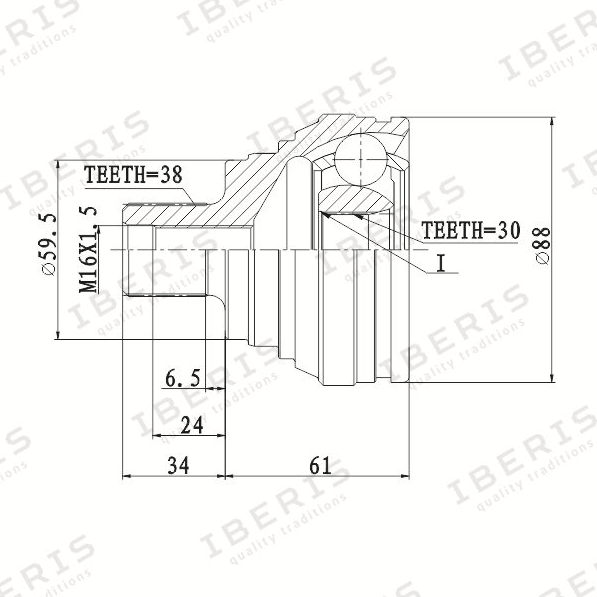 Описание: Автозапчасть фирмы IBERIS с кодом IB6014 ШРУС НАРУЖ (РАЗМЕР 30Х59.5Х38, БЕЗ АБС) AUDI 100, A6