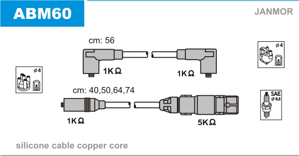 Описание: Автозапчасть фирмы JANMOR с кодом ABM60 Jm-abm60_к-кт проводов! vw golf iii 1.6 aft 94>