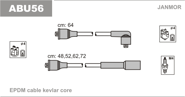 Описание: Автозапчасть фирмы JANMOR с кодом ABU56 JM-ABU56_к-кт проводов! VW Golf III 1.8/2.0 91>