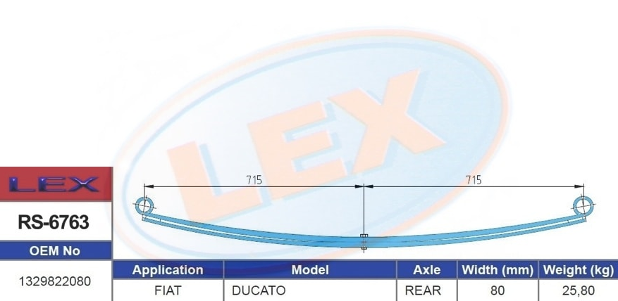 Описание: Автозапчасть фирмы LEX с кодом RS6763 Рессора 2-x лист. задн. в сборе с с/б Ducato 244/Rus (80-715-715x25,8)