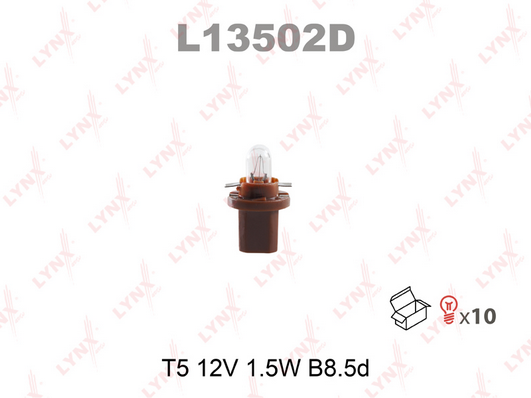 Описание: Автозапчасть фирмы LYNXAUTO с кодом L13502D Лампа BAX 12V-1.5W B8.5D цоколь бежевый