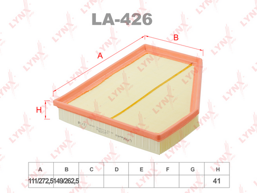 Описание: Автозапчасть фирмы LYNXAUTO с кодом LA426 Фильтр воздушный
