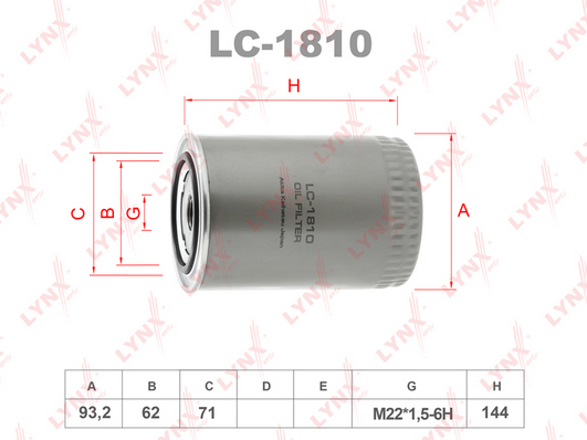 Описание: Автозапчасть фирмы LYNXAUTO с кодом LC1810 Фильтр масляный двигателя (Фильтр масляный)