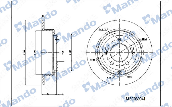 Описание: Автозапчасть фирмы MANDO с кодом MBC030041 Диск тормозной KIA Opirus (03-) задний (1шт.) MANDO
