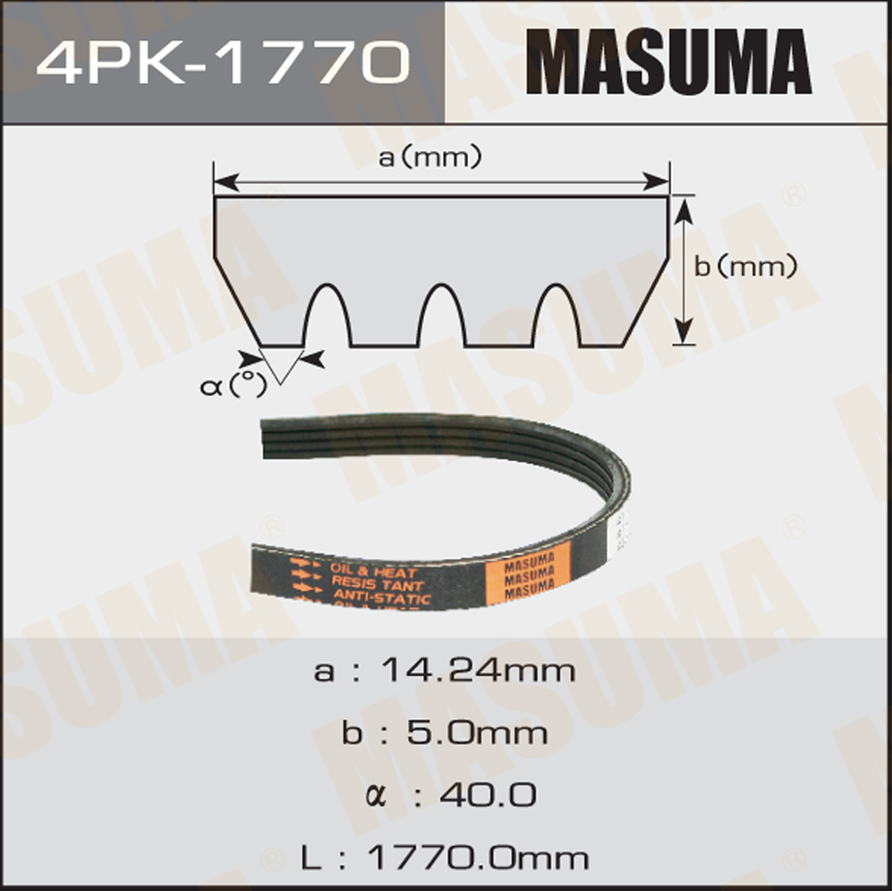 Описание: Автозапчасть фирмы MASUMA с кодом 4PK1770 Ремень ручейковый