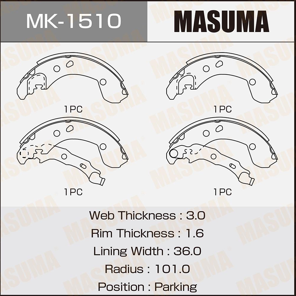 Наименование: Барабанные тормозные колодки MK1510 от компании MASUMA