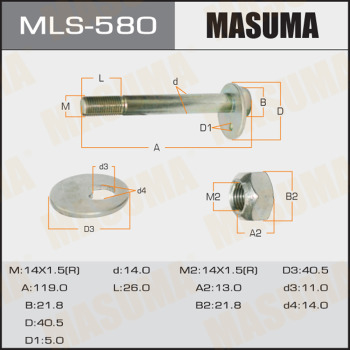 Описание: Автозапчасть фирмы MASUMA с кодом MLS580 Болт эксцентрик Masuma