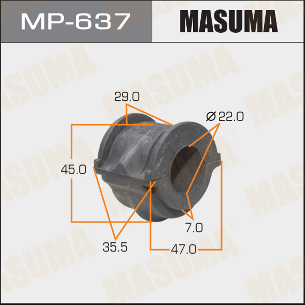 Описание: Автозапчасть фирмы MASUMA с кодом MP637 Втулка стабилизатора (упаковка 2 шт цена за 1 шт)