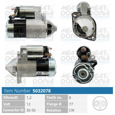Описание: Автозапчасть фирмы MEAT & DORIA с кодом 5032078 Стартер 12V 1,2KW Mitsubishi Outlander I, Galant VIII 2.0/2.4