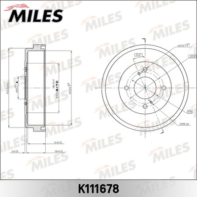 Описание: Автозапчасть фирмы MILES с кодом K111678 Барабан тормозной NISSAN PRIMERA P10/BLUEBIRD/LAUREL K111678