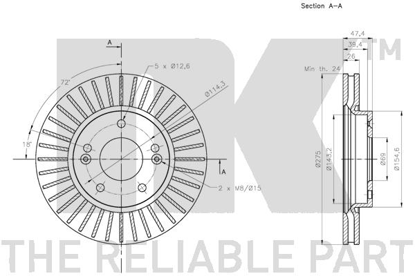 Описание: Автозапчасть фирмы NK с кодом 203449 Диск тормозной передний (275x26mm) / HYUNDAI Elantra 06~11