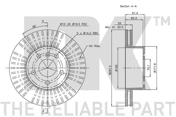 Описание: Автозапчасть фирмы NK с кодом 204022 Диск тормозной LAND ROVER DISCOVERY II 98-04 передний вент.