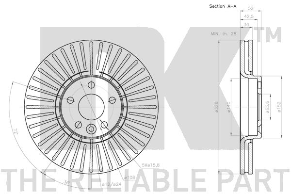 Описание: Автозапчасть фирмы NK с кодом 204860 Диск тормозной VOLVO XC60 2.0-3.0 08- передний