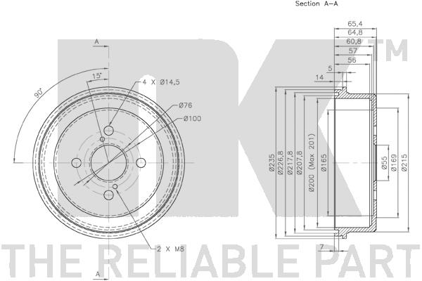 Описание: Автозапчасть фирмы NK с кодом 254513 254513nk барабан тормозной. toyota corolla 1.3-2.0d 92