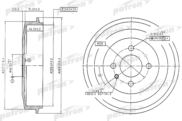 Описание: Автозапчасть фирмы PATRON с кодом PDR1034 Барабан тормозной