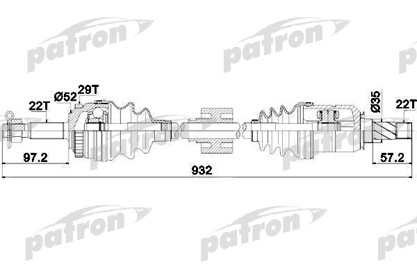 Описание: Автозапчасть фирмы PATRON с кодом PDS0193 Полуось передняя правая 22x932 2x52 ABS: 29T OPEL: