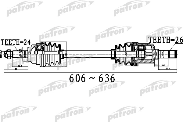 Описание: Автозапчасть фирмы PATRON с кодом PDS0516 Полуось передний мост слева 24X606X52X26 KIA RIO [