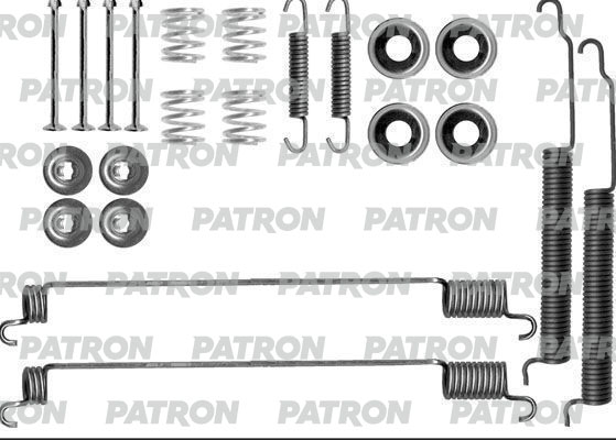 Описание: Автозапчасть фирмы PATRON с кодом PSRK0184 Комплект монтажный тормозных колодок барабанных nissan: patrol hardtop
