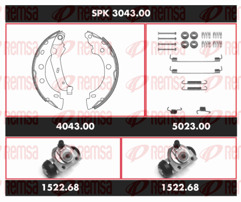Описание: Автозапчасть фирмы REMSA с кодом SPK304300 Комплект тормозов, барабанный тормозной механизм