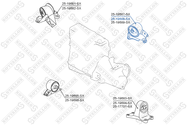 Описание: Автозапчасть фирмы STELLOX с кодом 2519688SX 25-19688-sx опора двигателя задняяnissan primera 01-07/x-trail 00-06